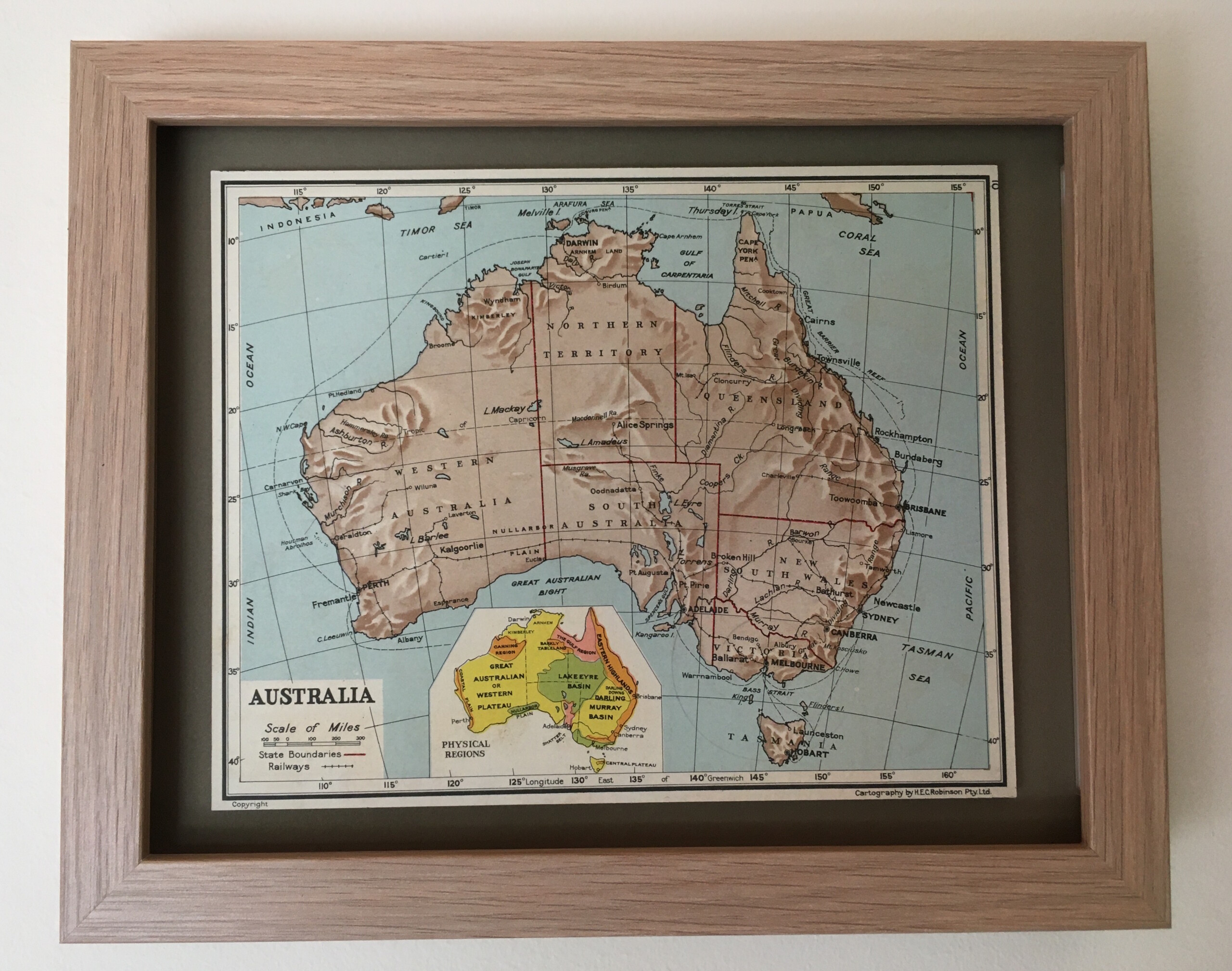 Between 1959 and 1966 H.E.C. Robinson Pty Ltd compiled and published primary school atlases for school children. This map comes from the Primary School 5th Edition.